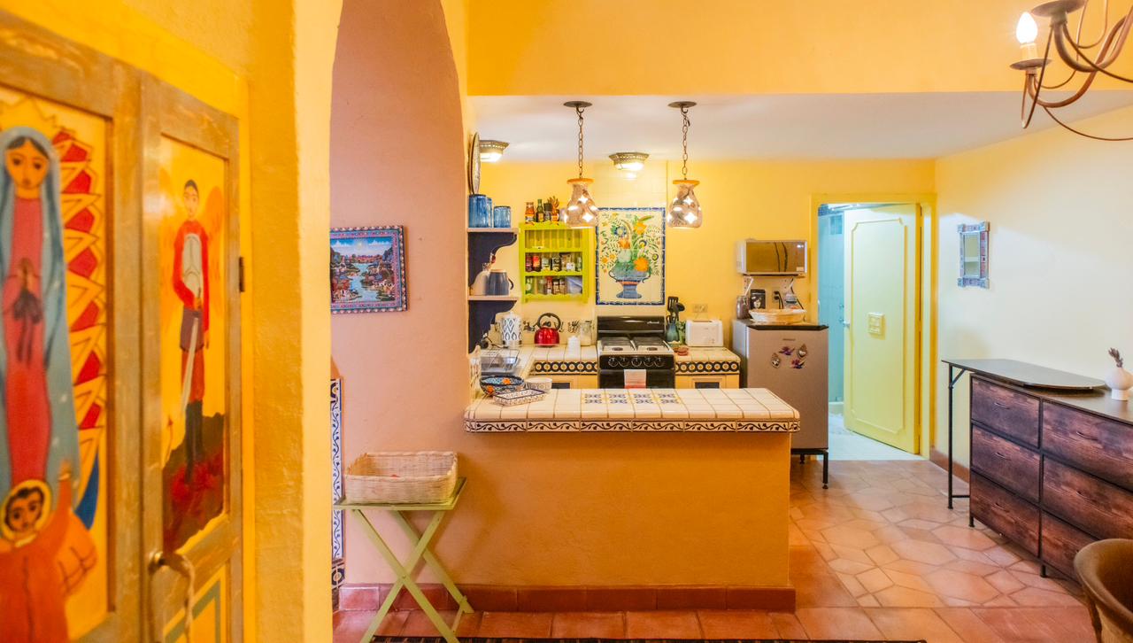 From the moment you step inside, the character is undeniable. Warm terracotta floors, graceful arched doorways, hand-painted tile details, and generous natural light give the apartment the kind of soul that can’t be manufactured. It feels like San Miguel.