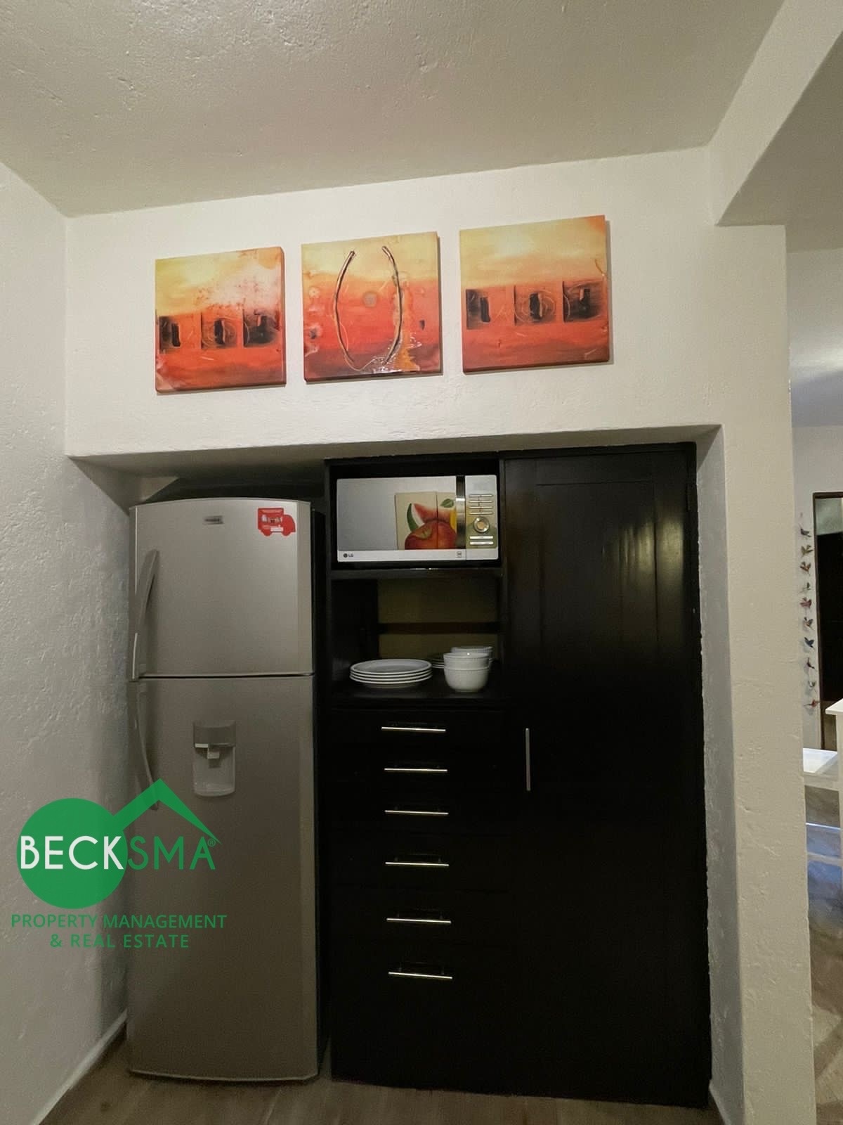 El departamento se encuentra en primer piso y consta de 1 recámara y 1.5 baños. Ofrece una excelente distribución y privacidad, ya que es una unidad completamente independiente, separada del departamento ubicado en la planta superior.
